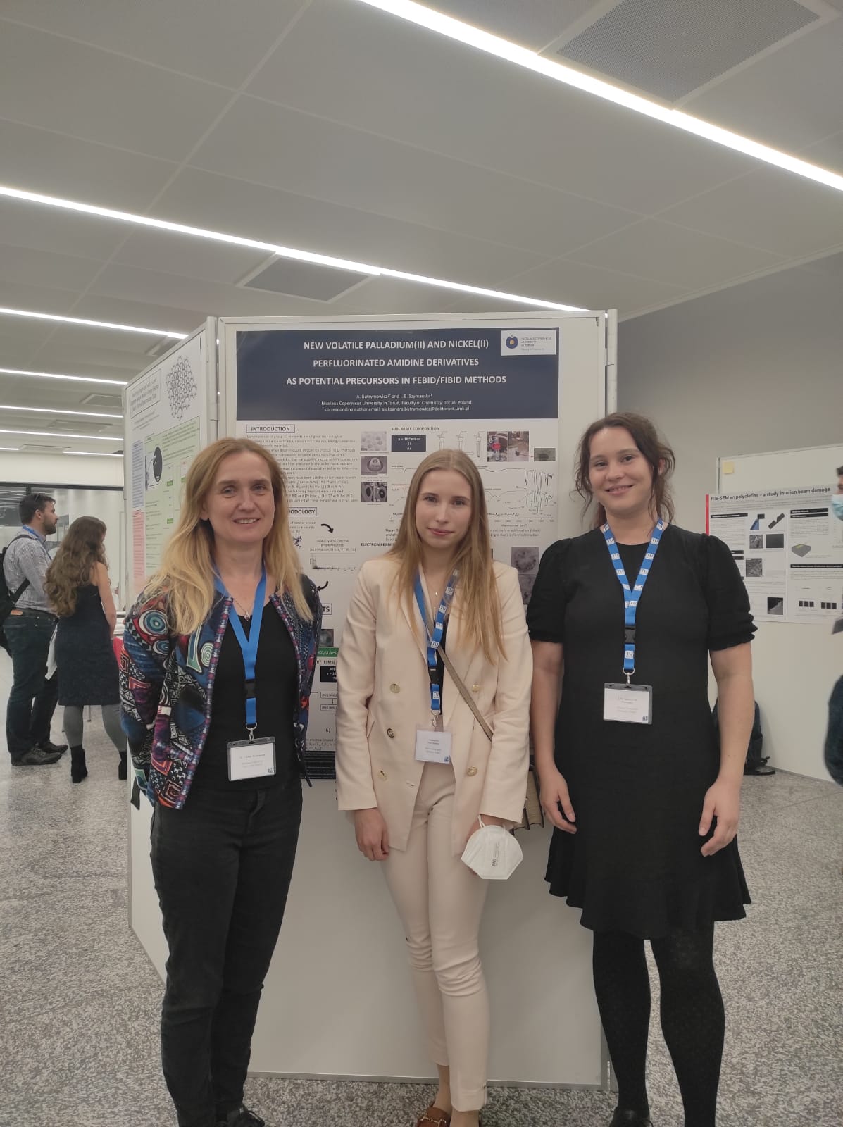Dr hab. Magdalena Barwiołek, prof. UMK, prezentacja ustna pt. „Iminowe ligandy, ich charakterystyka spektroskopowa oraz właściwości sensoryczne w stosunku do jonów cynku(II), miedzi(II) i magnezu(II), a także jako materiały o właściwościach luminescencyjnych”; Adriana Kaszuba, prezentacja ustna pt. „Triazolowe kompleksy platyny(II) o obiecującym potencjale przeciwnowotworowym”; Dominika Jankowska, poster pt. „Nowe związki cynku(II) i miedzi(II), ich charakterystyka oraz otrzymywanie nowych materiałów o właściwościach fluorescencyjnych”.