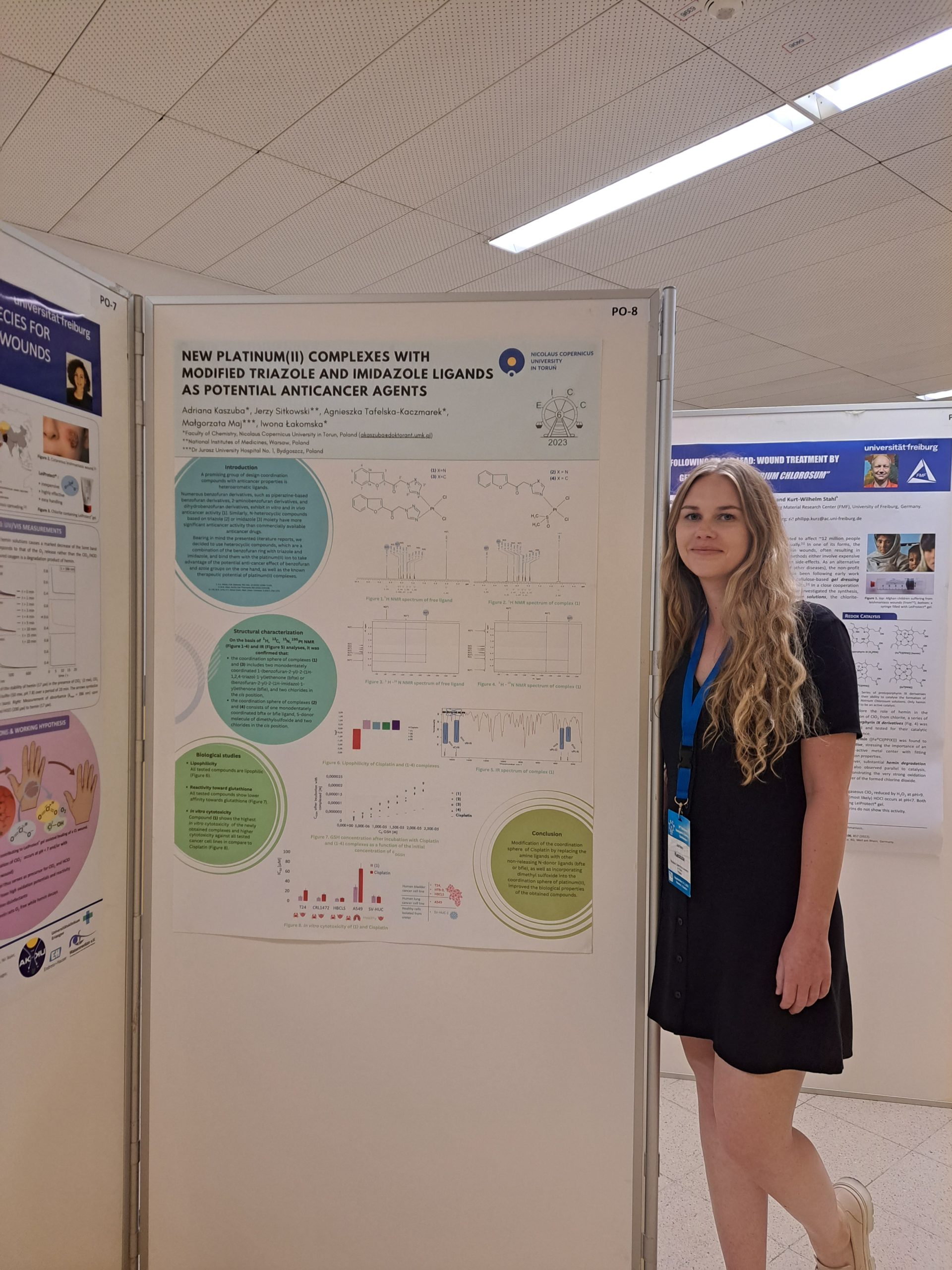 W dniach 01-04 lipca doktorantka Adriana Kaszuba uczestniczyła w międzynarodowej konferencji Chemistry towards Biology 11 (CTB11), Kraków, gdzie zaprezentowała poster z badań własnych pod tytułem „Structural characterization and assessment of anticancer properties of new piano-stool ruthenium(II) complexes with disubstituted triazolopyrimidines ligands”