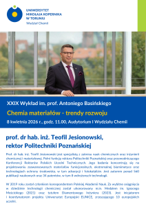 XXVIII Wykład im. Profesora Antoniego Basińskiego „Chemia materiałów – trendy rozwoju”, prof. dr hab. inż. Teofil Jesionowski (Politechnika Poznańska)