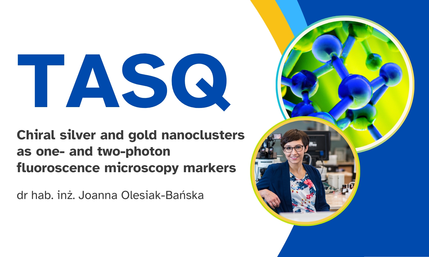 Wykład pt. "Chiral silver and gold nanoclusters as one- and two-photon fluoroscence microscopy markers" wygłosi dr hab. inż. Joanna Olesiak-Bańska z Politechniki Wrocławskiej.